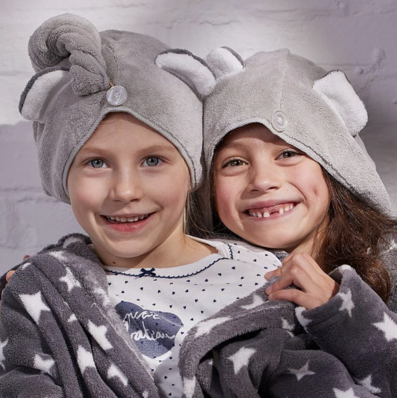 Hår Turban til baby & børn med de sødeste små øre som en koala bjørn. En hår turban som alle vil elske. Hår turbanen er dejlig blød, samtidig med at den hurtigt og blidt vil tørre håret med dens gode suge evne. Hår turbanen kan bruges til både små og store, da man selv kan "indstille" den når den drejes på. Brug: Sæt turbanen på & drej enden. Fold derefter enden ind foran og knap turbanen fast. Så er du klar til eventyr mens håret tørrer. Vask: Hårturbanen kan vaskes ved 60 grader. Mere end halvdelen af den polyester, som PARSA har brugt til at lave hårturbanen, er genbrugt! Hårturbanen er uafhængigt testet for skadelige stoffer hos OEKO-TEX® og certificeret i henhold til Standard 100 af OEKO-TEX®.