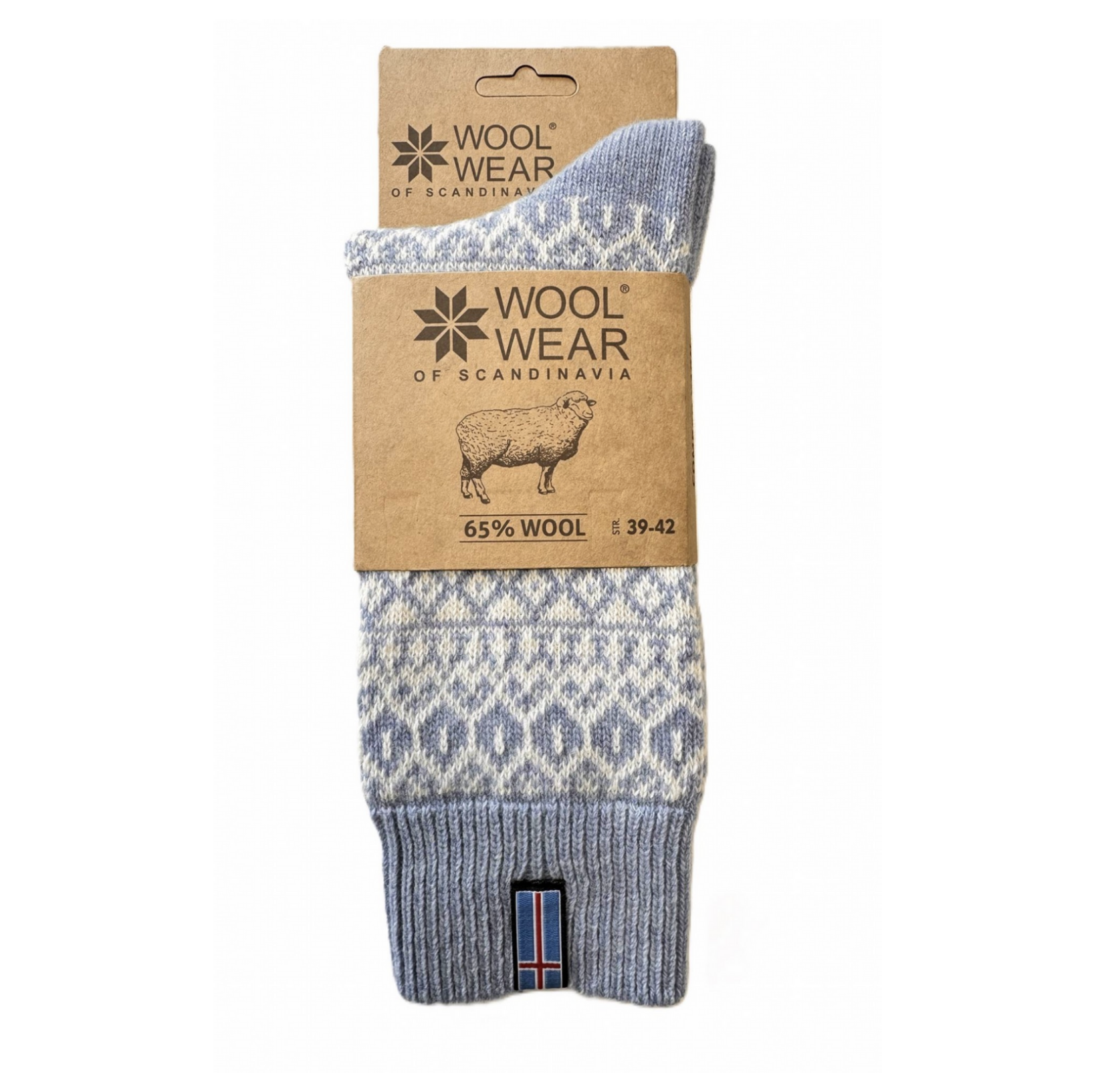 Uldsokker l Nr 25 l m/islandsks flag l Lyseblå l 65% Uld l
