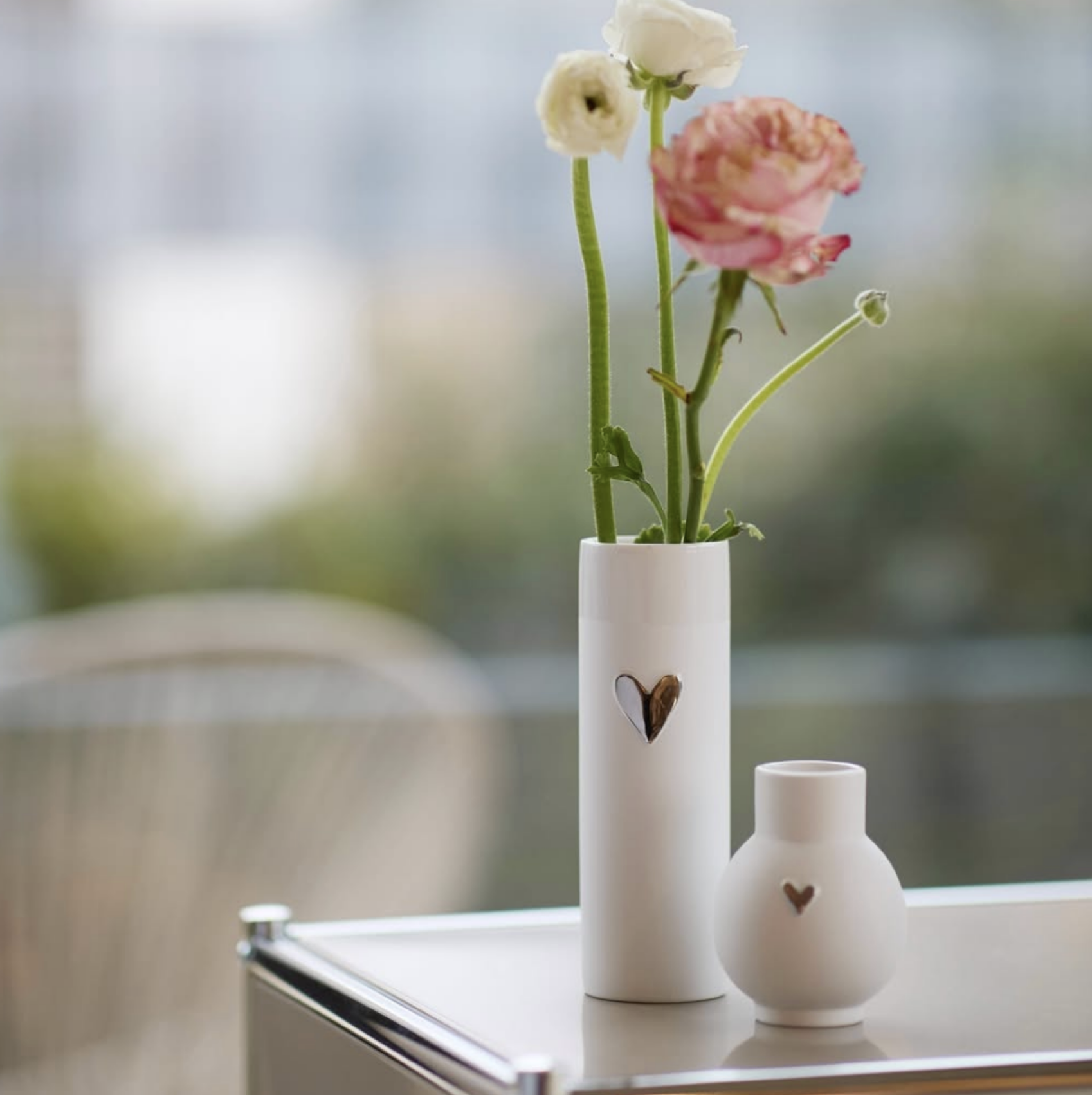 Vasen er af porcelæn og glaseret indeni med et smuk lille hjerte af sølv.